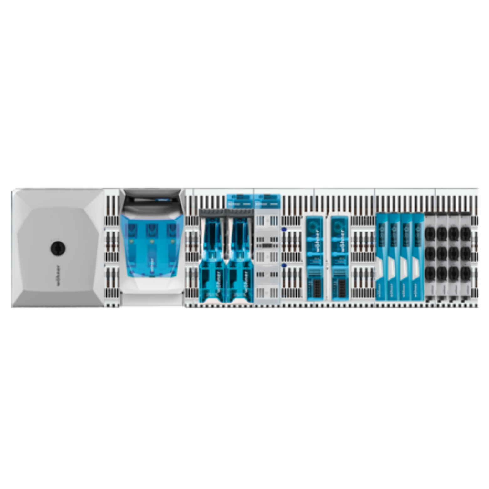 Wöhner’s CrossBoard 800A is a high-capacity modular busbar system designed for safe, efficient power distribution up to 800A. It offers the same innovative plug-in technology as the smaller CrossBoards, enabling fast, tool-free installation of components.