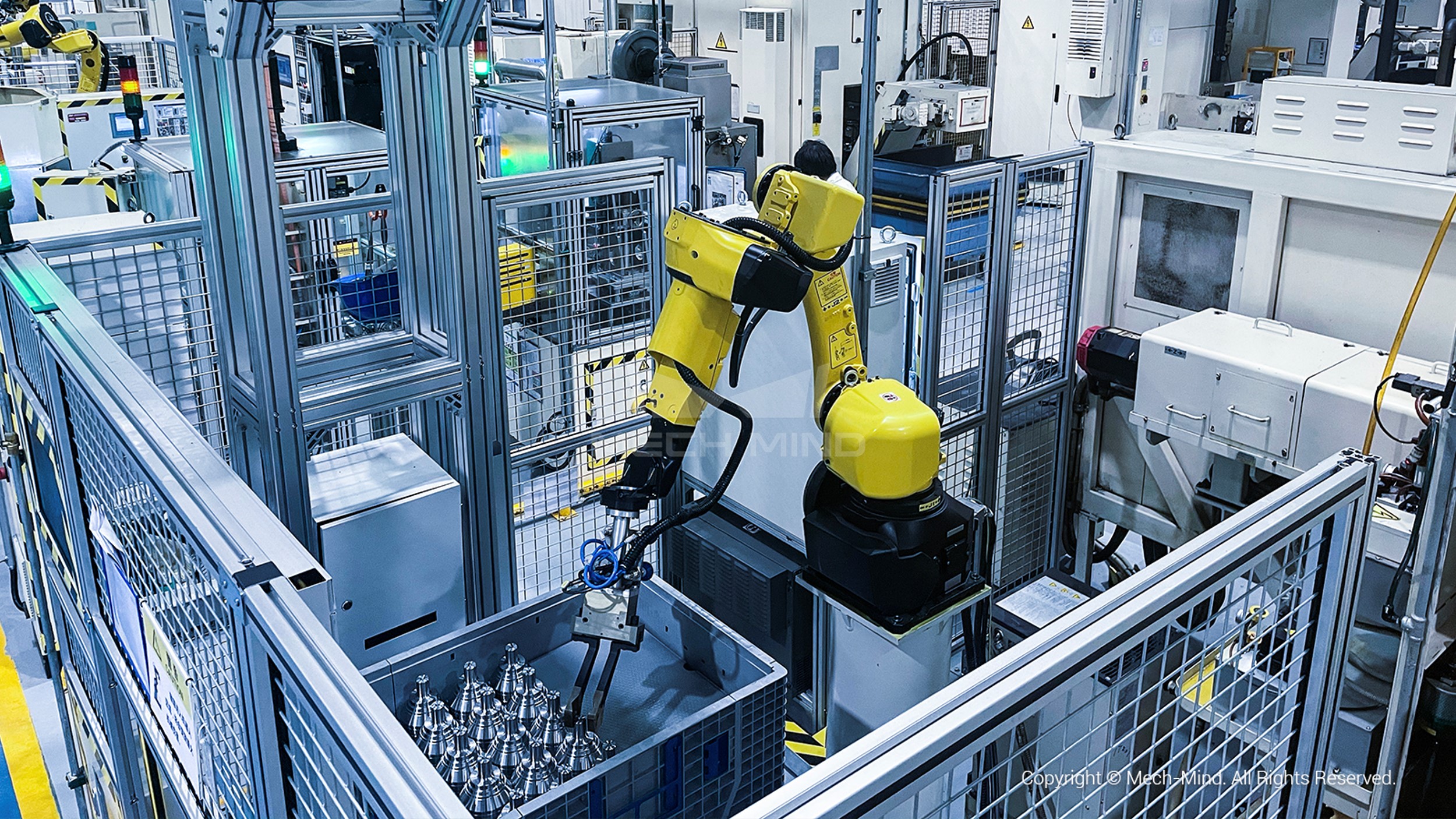 Mech-Mind robotics delivers complete and reliable solutions to real-world bin picking, order picking, depalletizing, palletizing, machine tending, assembly, gluing, high precision locating, high-precision measurement, defect detection and more.